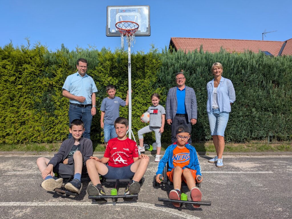 Aktuell überreichte er eine Spende in Höhe von 1.000 Euro, die eine bereits im letzten Schuljahr getätigte Spende von 500 Euro ergänzt. Durch diese finanzielle Unterstützung konnten bereits im Sommer wertvolle Bewegungsspielgeräte für den Pausenhof angeschafft werden. Unter anderem wurde ein neuer Basketballkorb bereitgestellt, der bei den Schülerinnen und Schülern für große Freude sorgt und in jeder Pause genutzt wird.